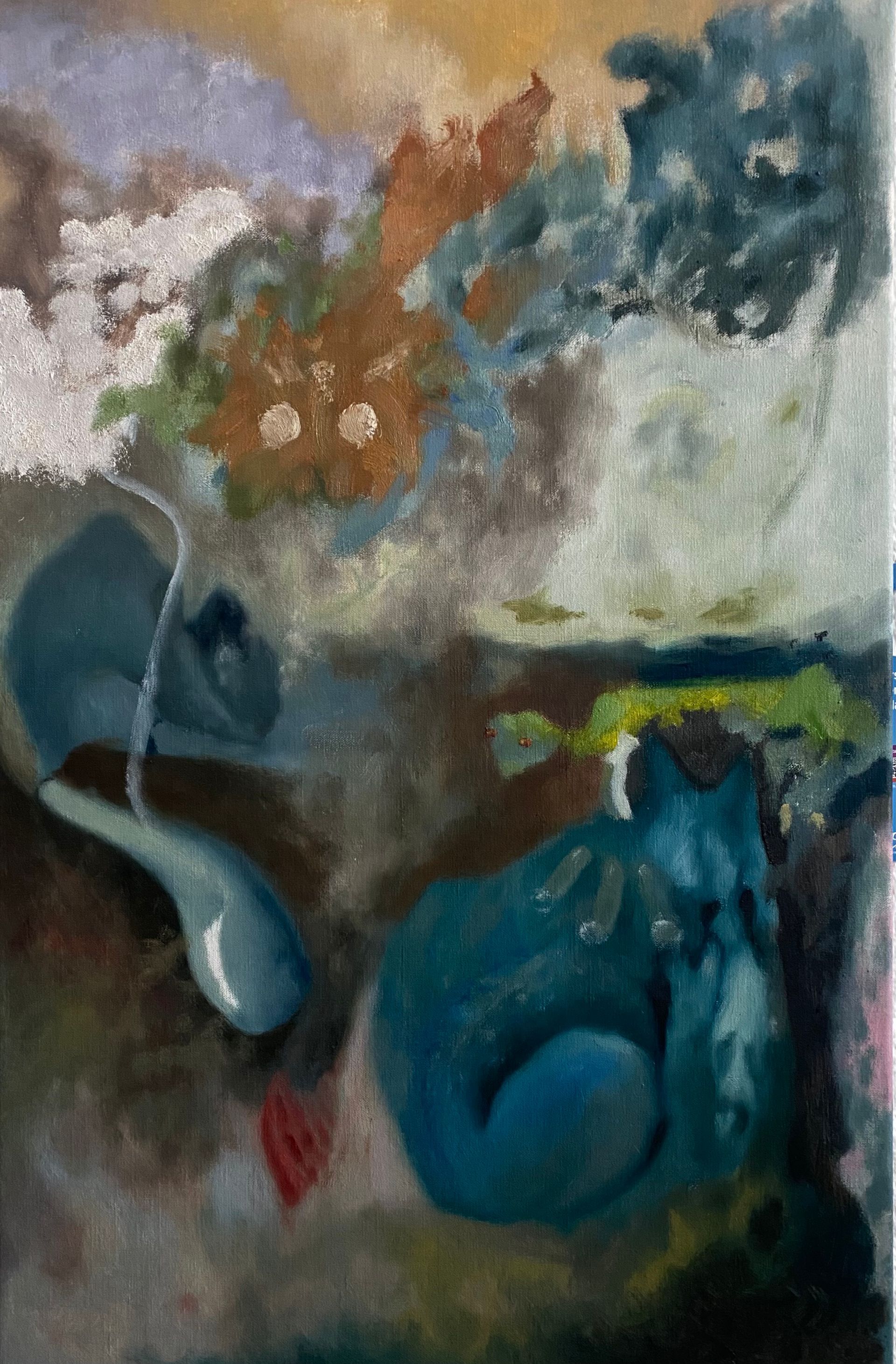 "moon-eyed orange cat bursts into the deteriorative function" 2025 ❥ oil on canvas
